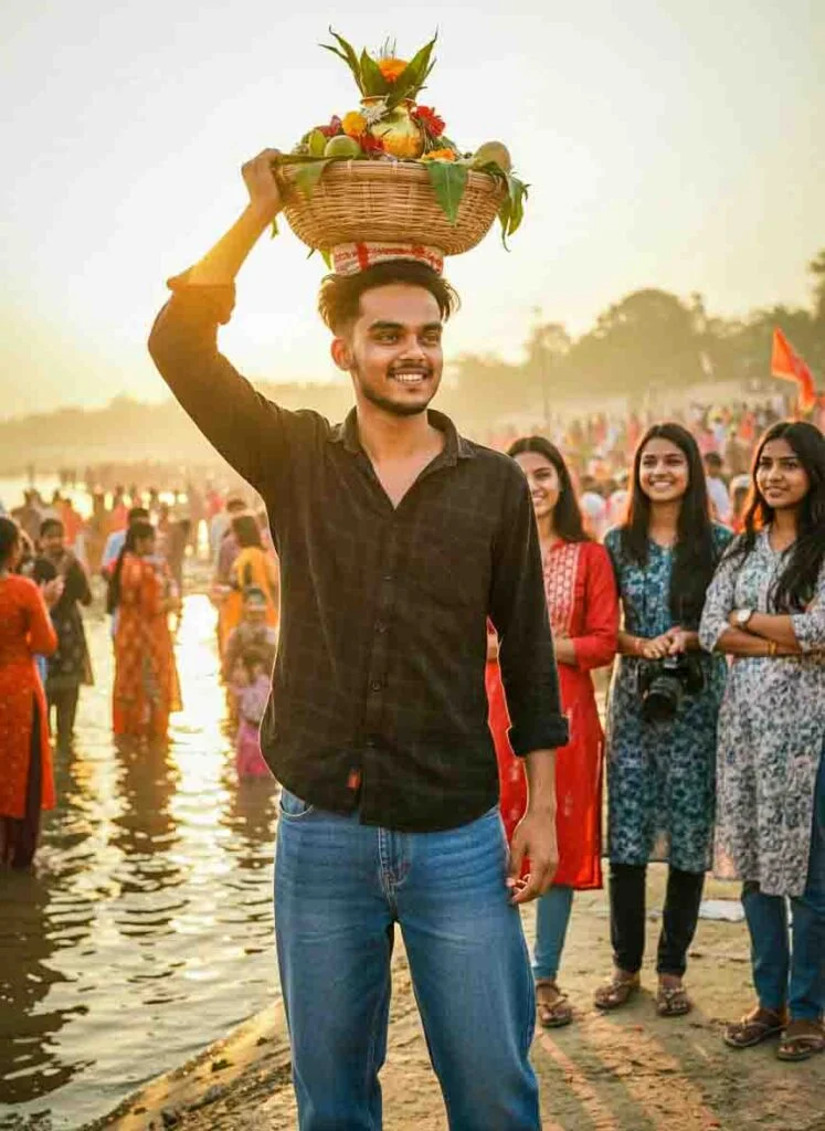Creating a Chhath Puja photo using Google Gemini is a simple, creative, and rewarding process that allows anyone to celebrate this sacred festival digitally. With just a few clicks, you can transform your regular photo into a stunning festive masterpiece that beautifully captures the essence of Chhath Puja celebrations—from the golden glow of the setting sun to the lively energy of devotees at the riverbank. Whether you’re sharing it on social media or keeping it as a memory, this digital creation process helps preserve tradition while embracing modern technology.