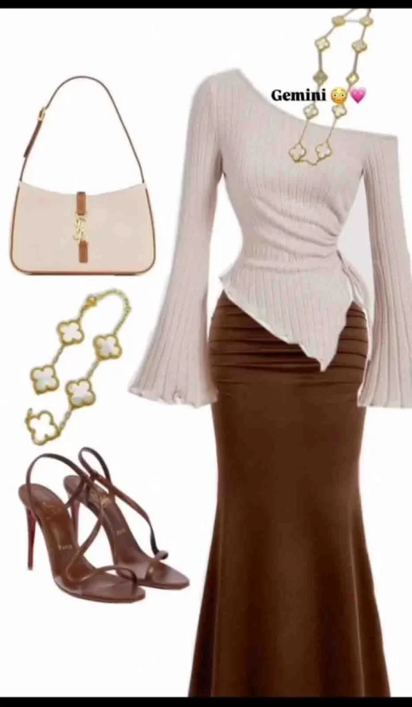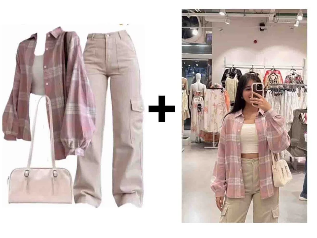 This is a photo of me and my outfit inspiration. Please apply this outfit realistically onto my image, ensuring it looks completely natural and seamless. The outfit should fit proper proportions and follow the natural curves of my body, without appearing stretched, distorted, or misaligned.