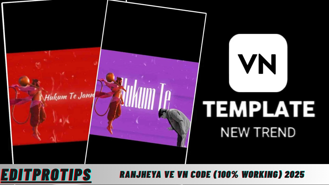 Hello guys! Myself EditPro Tips, and welcome back to our official website, EditPro Tips. Today, I am excited to share with you the Ranjheya Ve VN Code, which is 100% working and perfect for creating eye-catching, viral videos. VN Codes are extremely popular among content creators, and we often use both girls’ and boys’ VN Codes for every type of video editing, whether it’s Instagram reels, TikTok clips, or YouTube shorts.